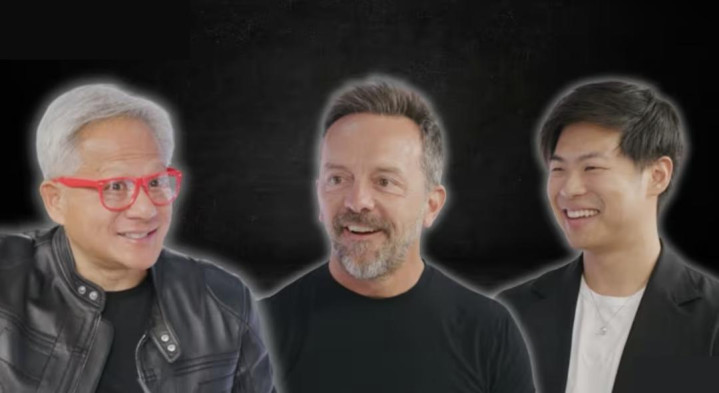 黄仁勋、布拉德・格斯特纳(Brad Gerstner)、克拉克・唐(Clark Tang)(从左至右)